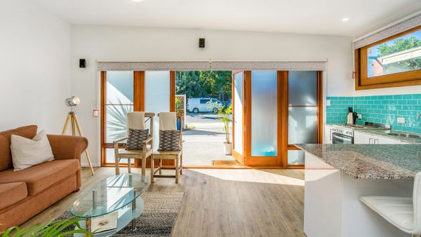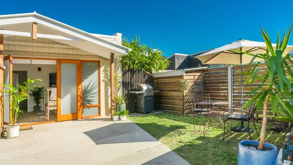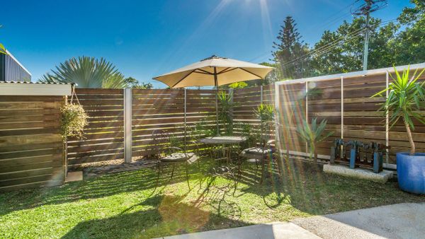 The outdoor courtyard and garden has a BBQ and is a beautiful space to relax and enjoy the Byron sunshine and listen to the ocean.
