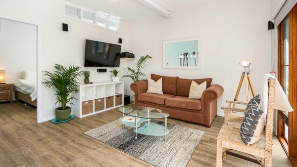 Half Moon Cottage can be rented separately or as part of Byron Moon. It has a separate bedroom, bathroom, outdoor garden and courtyard. The bedroom has a King bed that can be split to twin beds if required. There is fresh linen and towels provided for your stay.